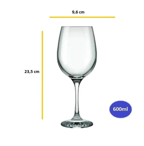Capacidade: 600 ml, o que a torna ideal para vinhos tintos, que precisam de mais espaço para “respirar” e liberar seus aromas. Essa capacidade generosa também a torna adequada para vinhos brancos, rosés e até mesmo espumantes.