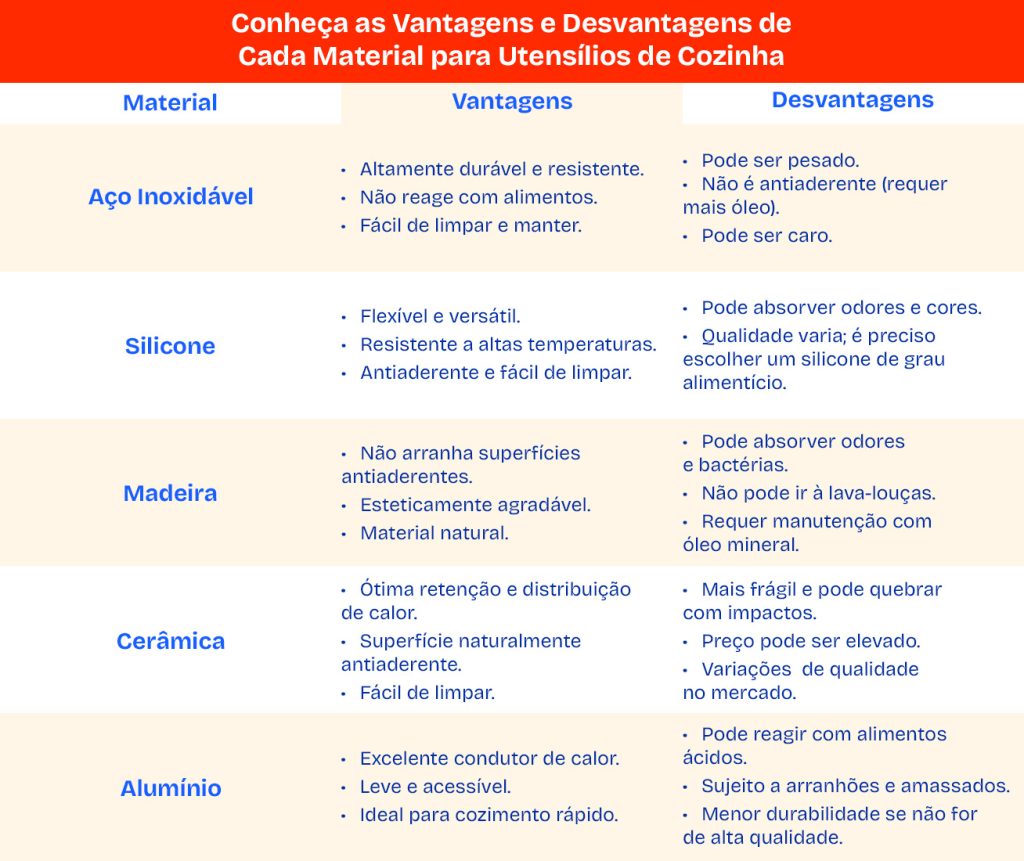 Importante: Priorize sempre materiais de alta qualidade para garantir a segurança e a longevidade dos seus utensílios.